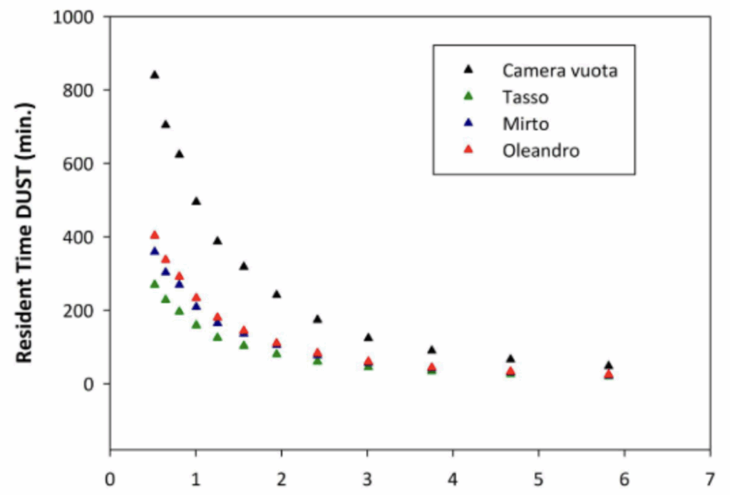 Quindi per la durata di 24 ore ciascuna delle specie in esame (tasso, mirto e oleandro) si è trovata a convivere prima con 200 parti per miliardo di ossidi di azoto (NOX), quindi per altre 24 ore con 50 microgrammi su metro cubo di black carbon (particella di carbonio ultrasottile e molto tossica prodotta dai motori), e per un’altra giornata con una megaconcentrazione di sabbie desertiche dell’Arizona, usate in questi casi dai ricercatori per simulare le polveri grossolane, in particolare PM10. Da notare che tutte queste scelte rappresentano i valori limite orari per i singoli inquinanti testati. Infine, per 24 ore con un mix di tutti questi inquinanti in ChAMBRe. In sostanza, una camera a gas. Per rendere più realistico il comportamento delle piante in queste condizioni estreme, le 24 ore sono state scandite in notte e giorno, con l’irraggiamento di luce solare riprodotta da un apparato che sormonta la ChAMBRe.