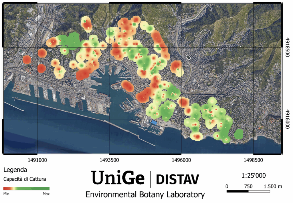 Fra non molto, questa ricerca condotta nell’ambito del progetto SALPIAM potrà offrire una mappa del verde della città di Genova che illustra con un codice colore il potenziale antismog delle diverse specie arboree georeferenziate nella città realizzato dai ricercatori UniGe.